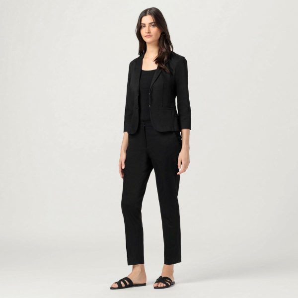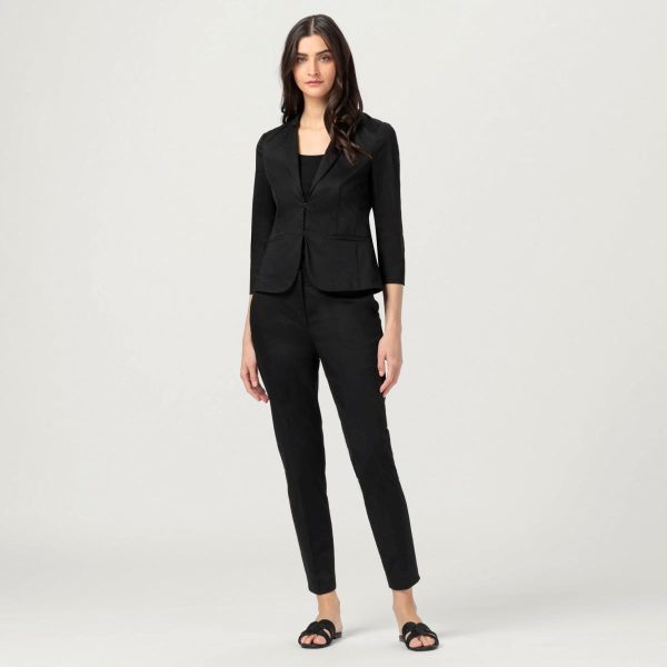 Essential für viele Gelegenheiten, das jedes Jahr immer wieder gern getragen wird: der figurbetonte HALLHUBER Blazer SOFIA im Cropped Fit mit schmalem, aufsteigendem Reverskragen, Paspeltaschen und kurzen Saumschlitzen an den 3/4-Ärmeln. Die Qualität: weicher Bio-Baumwolle-Stretch aus kontrolliert biologischem Anbau, ohne Futter.