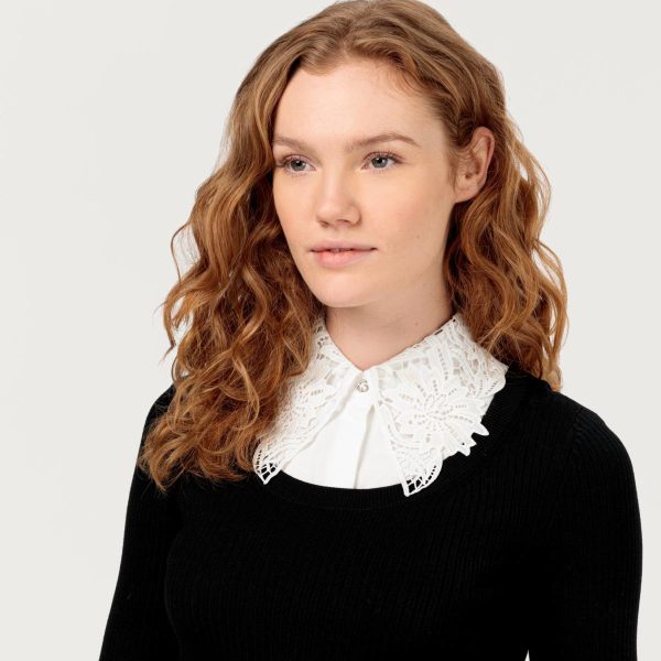 Spitzen-Update für Ihre Essential-Pullis: markanter HALLHUBER Kragen aus transparenter Spitze mit floralem Muster. Ein schillerndes Highlight setzt der Strassknopf im Kragensteg. Der Einsatz unter dem Blusenkragen besteht aus einer weichen Crepe-Qualität und sitzt perfekt dank dehnbarer Straps mit individuell regulierbarer Länge, die sich unter die Achseln schmiegen. Die Knopfleiste wird verdeckt geschlossen.