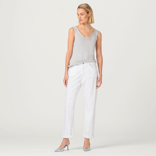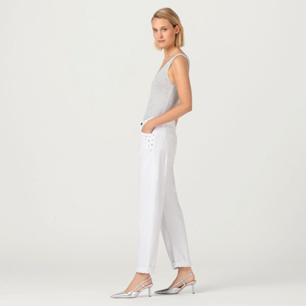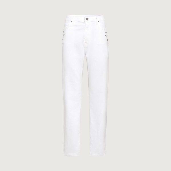 Lässt sich unkompliziert stylen und gehört in jeden gut sortierten Kleiderschrank: die Loose-Fit-Jeans von HALLHUBER in Weiß mit niedriger Leibhöhe. Das Modell ist aus leichtem Baumwolldenim von Candiani gefertigt und auf der Vorderseite unterhalb der Eingrifftaschen mit diversen Nieten-Strasssteinen verziert. Superlässig und absolut bequem.