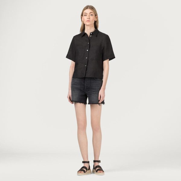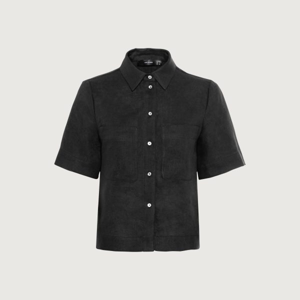 Kurz geschnittene Leinenbluse mit Hemdkragen,