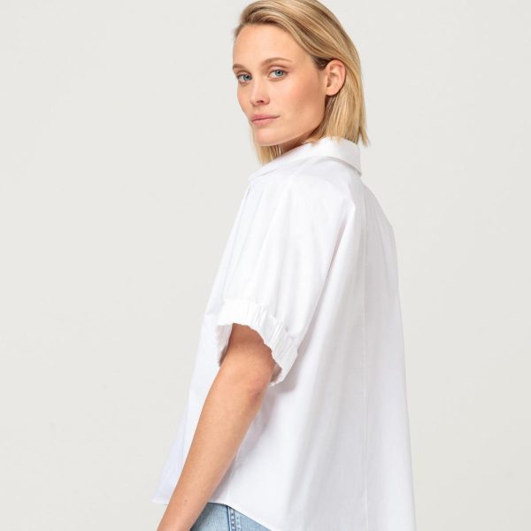 Kommt im superlässigen XXL-Shape: die Kurzarmbluse von HALLHUBER mit Hemdkragen und edel schimmernden Perlmuttknöpfen. Die Ärmel des Modells sind ebenfalls weit geschnitten und mit gerafften, elastischen Aufschlägen akzentuiert. Die Oversize-Bluse ist aus dicht gewebtem Baumwollpopelin gefertigt und mit leicht gerundeter Saumlinie abgeschlossen. Kombinieren Sie die sommerliche Hemdbluse etwa mit Wide-Leg-Jeans und bequemen Sneakers.
