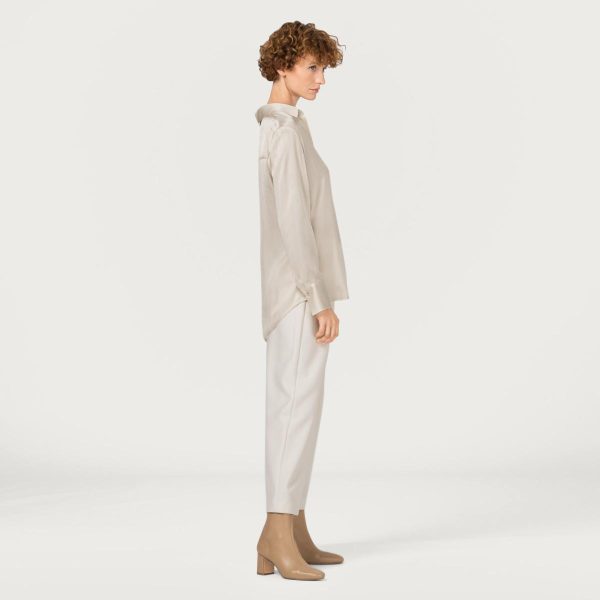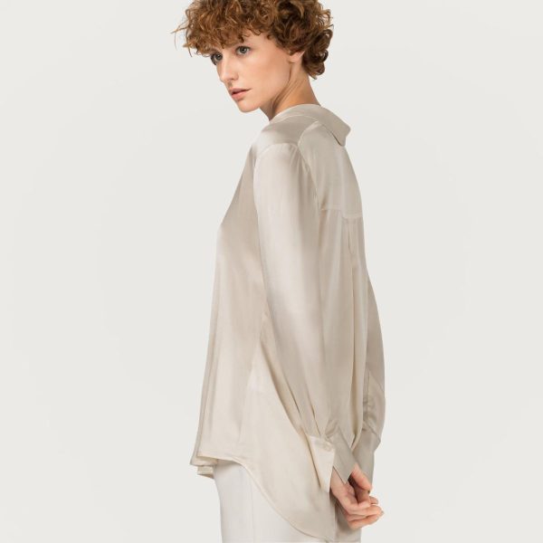 Ob zum Blazer oder zur Business-Hose: Die HALLHUBER Longbluse zählt zum Pflichtprogramm für offizielle Looks! Modell in Loose Fit mit Hemdkragen, V-Ausschnitt und Rückenpasse. Die Bluse ist aus softem Viskose-Satin gefertigt, fließend und dezent glänzend.