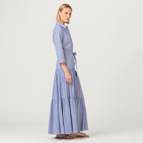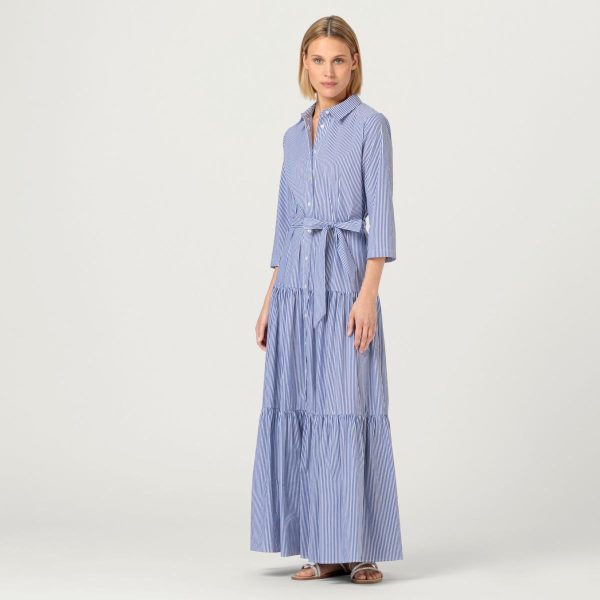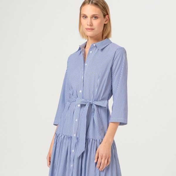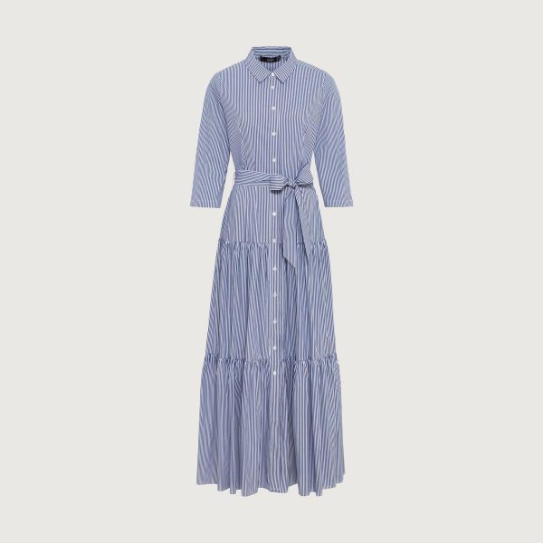 Gelungene Mischung aus klassischem Hemdkleid und romantischem Volant-Dress: das HALLHUBER Maxikleid aus weichem Baumwollpopelin mit feinem Streifenmuster. Das Modell ist mit Hemdkragen und 3/4-Ärmeln zum Aufkrempeln sowie Stufenvolants gearbeitet und kann mit dem inkludierten Schleifengürtel auf Taille gebracht werden. Ein Allrounder für Freizeit, Job und Urlaub!