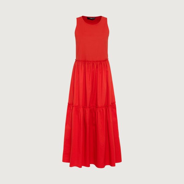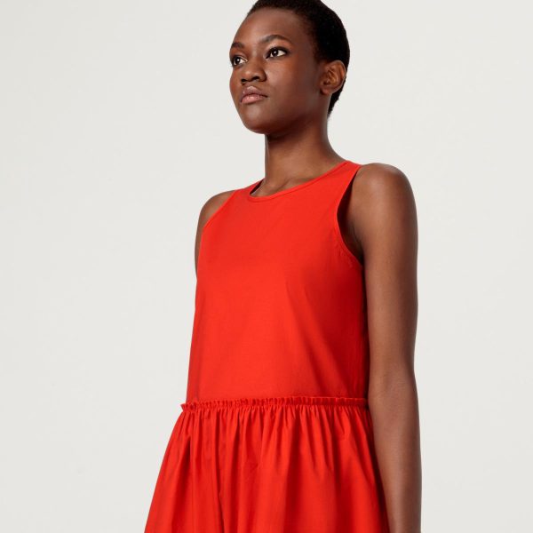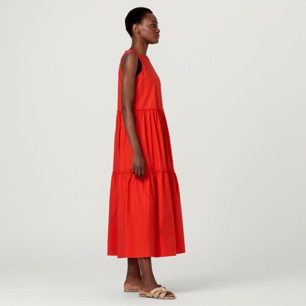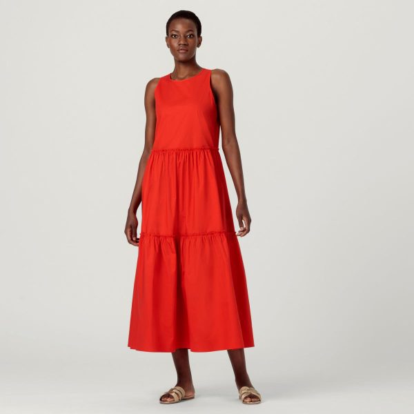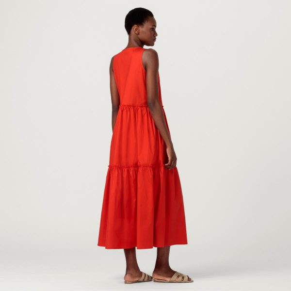 Hallhuber Midikleider | Ärmelloses Volantkleid Aus Festem Baumwollpopelin Dark Papaya Damen