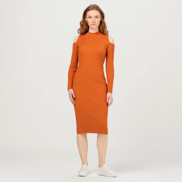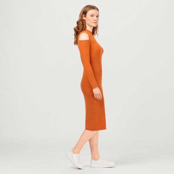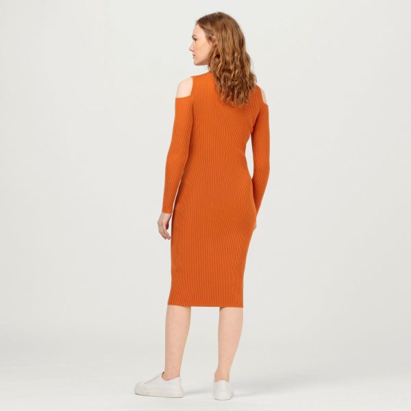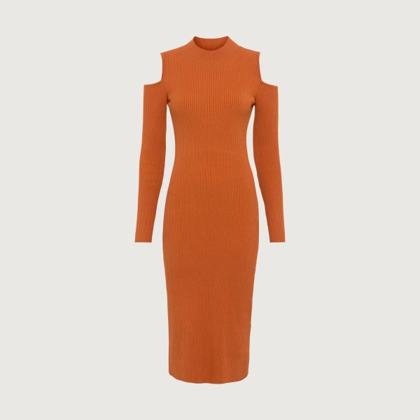 Wadenlanges Rippstrickkleid mit Schulter-Cut-outs,