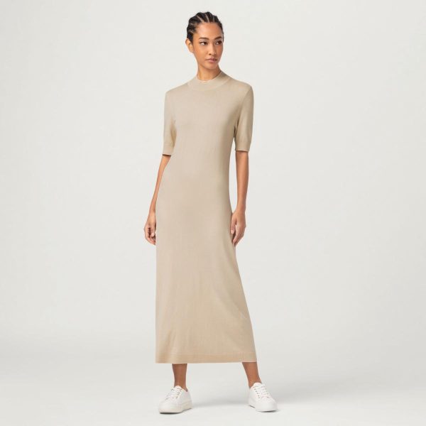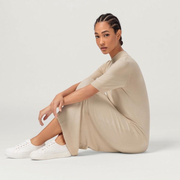 Kommt mit unkompliziertem Chic und ist sowohl tagsüber als auch am Abend ein smarter Begleiter: das HALLHUBER Midikleid aus softem Viskose-Feinstrick. Das wadenlange Strickkleid kommt mit modernem Stehkragen und kurzen Ärmeln, jeweils mit Rippenstruktur. Stylen Sie das Modell etwa mit Long-Cardigan, langem Wollmantel und Stiefeleltten für den Übergang.