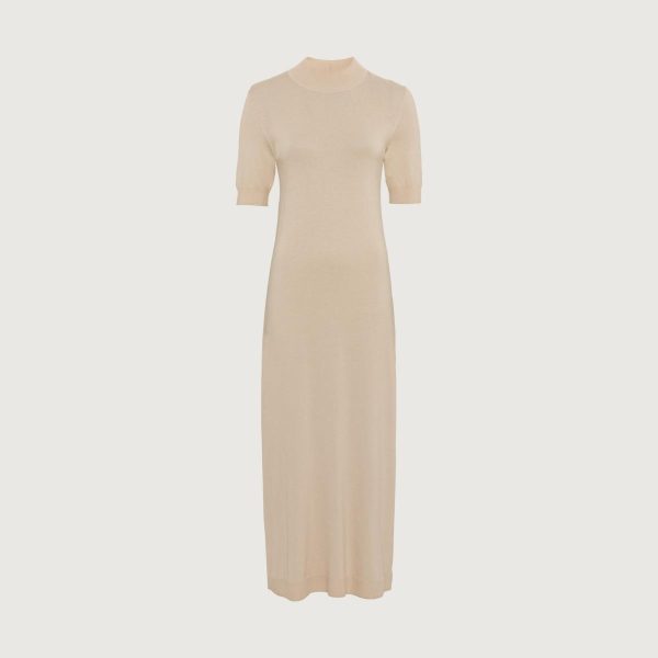 Midikleid mit Stehkragen und kurzen Ärmeln,